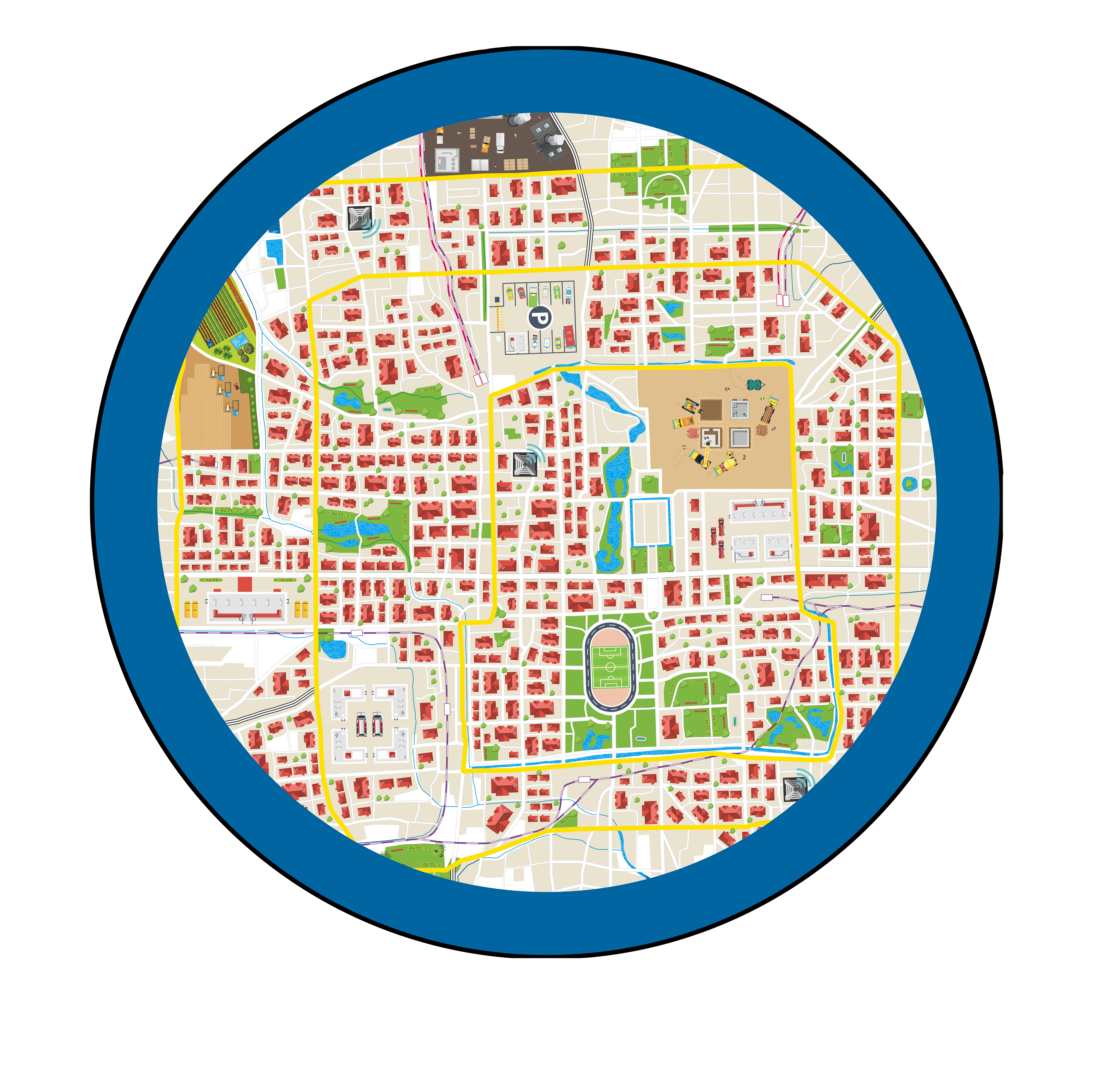 As shown in the example below, NB-IoT can provide region-wide coverage in a cost-effective manner while extra capacity is delivered in hot zones where broadband is required. Using the Cellular industry’s “3GPP" standards, both frequencies may be supported through the same antenna and base stations to reduce capital and operating costs while providing needed capacity.